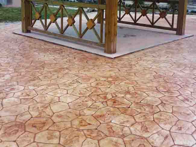 壓花地坪,其實又叫壓模地坪,壓印地坪。壓花地坪是以特有的圖案框架現場澆筑、一體成形的壓花地坪系列,用現澆混凝土地面以特制模具有彩色印花料,采用先進的技術、配合嚴謹的施工管理,制作而成。它展現了多彩多姿的圖案模型及豐富變化的色彩,更具有耐磨、耐壓、止滑的效果及一體成型的特性,并具有多種實際用途。