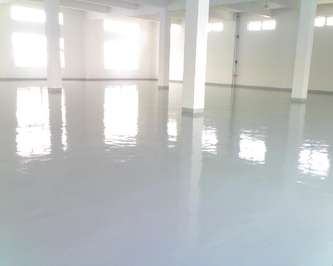 預拌料呈條狀傾倒在基面上,用一橡膠刷帚均勻抹平。施工自流平砂漿時,應用釘狀滾筒放氣。在剛施工完的底層涂層上撒上干砂(0.4-0.7毫米)。干固后需清除多余的砂子,表面應充滿砂以達到最好的視覺效果,降低物料的消耗。用工業用的真空吸塵器清除掉表面的灰塵。用滾筒或橡膠刷帚施工面層涂層。